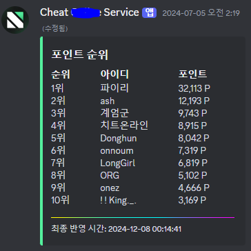 ※ 그리고 짭 치트닷컴에서 존나 열심히 활동함 ㅋㅋ ↓ (채팅을 많이칠수록 포인트가 올라감)