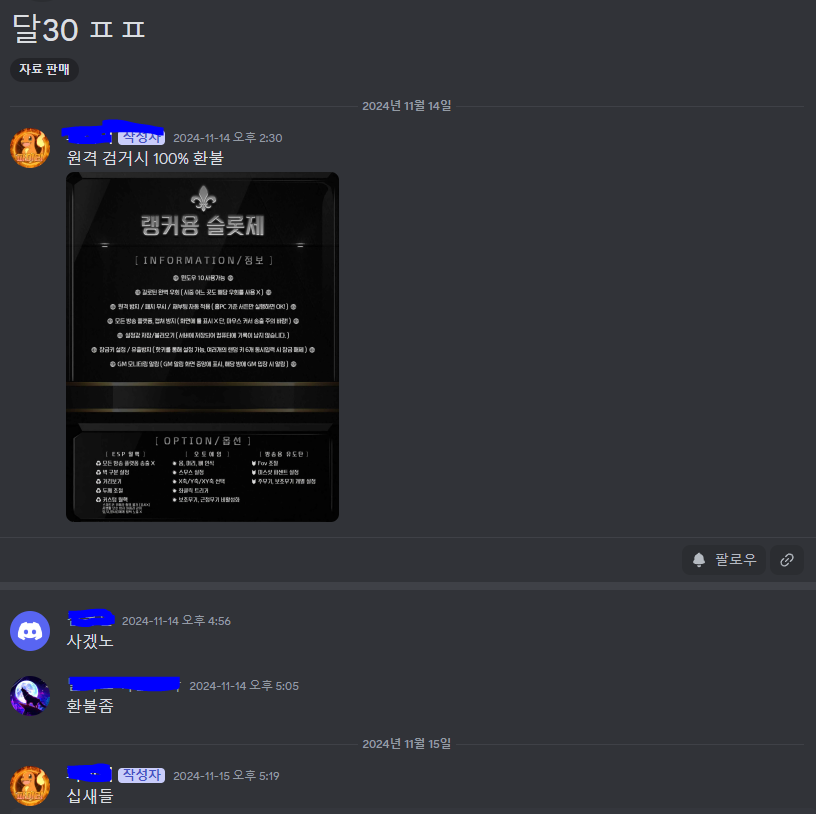 1. 디X코드에 짭 치트닷컴에서 판매 활동 (치X온라인)